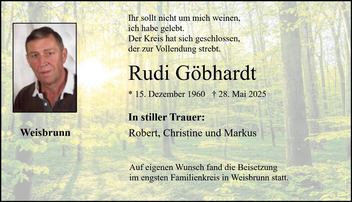 wir wünschen Ihnen von Herzen viel Kraft, dass Sie Menschen um sich haben, die Ihnen in dieser schweren Zeit beistehen und Halt geben. Zusätzlich können Sie auf dieser Gedenkseite Erinnerungen teilen und so das Andenken gemeinsam wachhalten.