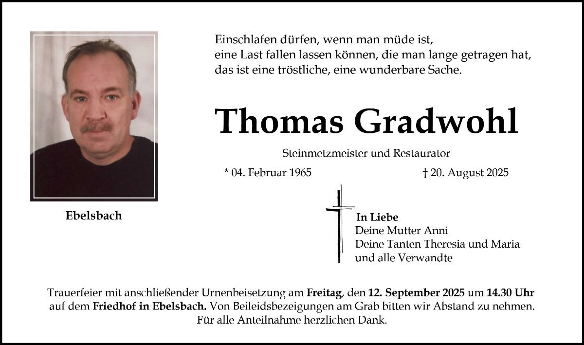 Thomas Gradwohlgestorben am 20. August 2025